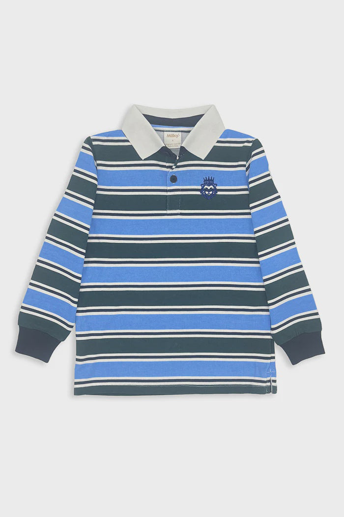 Milky Clothing Green Stripe Rugby combines effortless style with practicality, providing warmth without added bulk—perfect for layering under a winter jacket. Featuring a classic collared design with center buttons, this rugby maintains a timeless look while allowing your little one the freedom to play.
