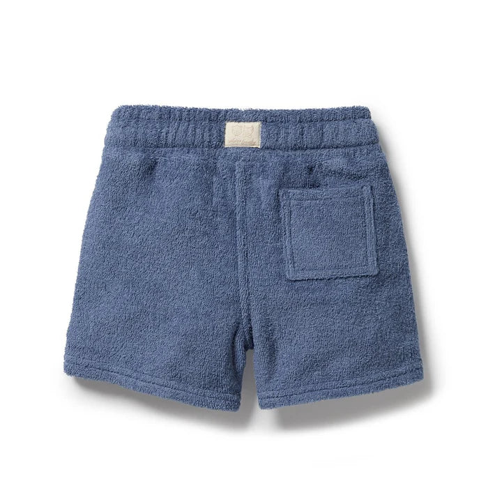 These soft and absorbent terry towelling shorts are made from GOTS-certified organic cotton, perfect for keeping kids comfy after a swim or on warm summer days. Featuring a rich deep blue colour, they’re designed with a soft elasticated waistband and a functional drawcord for a comfy, adjustable fit. Gentle on delicate skin and made without harmful chemicals, these easy-to-wear shorts are a summer staple for little ones on the go. Key Features: Soft elasticated waistband for easy, pull-on comfort. ightweight and breathable for warm weather. Gentle on sensitive skin. Adjustable ties at waistband. Made with GOTS-certified organic cotton. Sustainably produced. Packaged in a bio-degradable bag. Details: 100% GOTS-certified organic cotton. Certified by: Ecocert, EGL 212333. Machine washable. Made in India.
