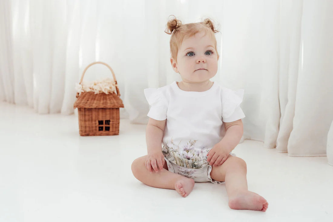 Made from gentle GOTS certified organic cotton, this tee features a gorgeous field of flowers print front and back with sweet flutter detailing to sleeves. A simple staple that will elevate any outfit.