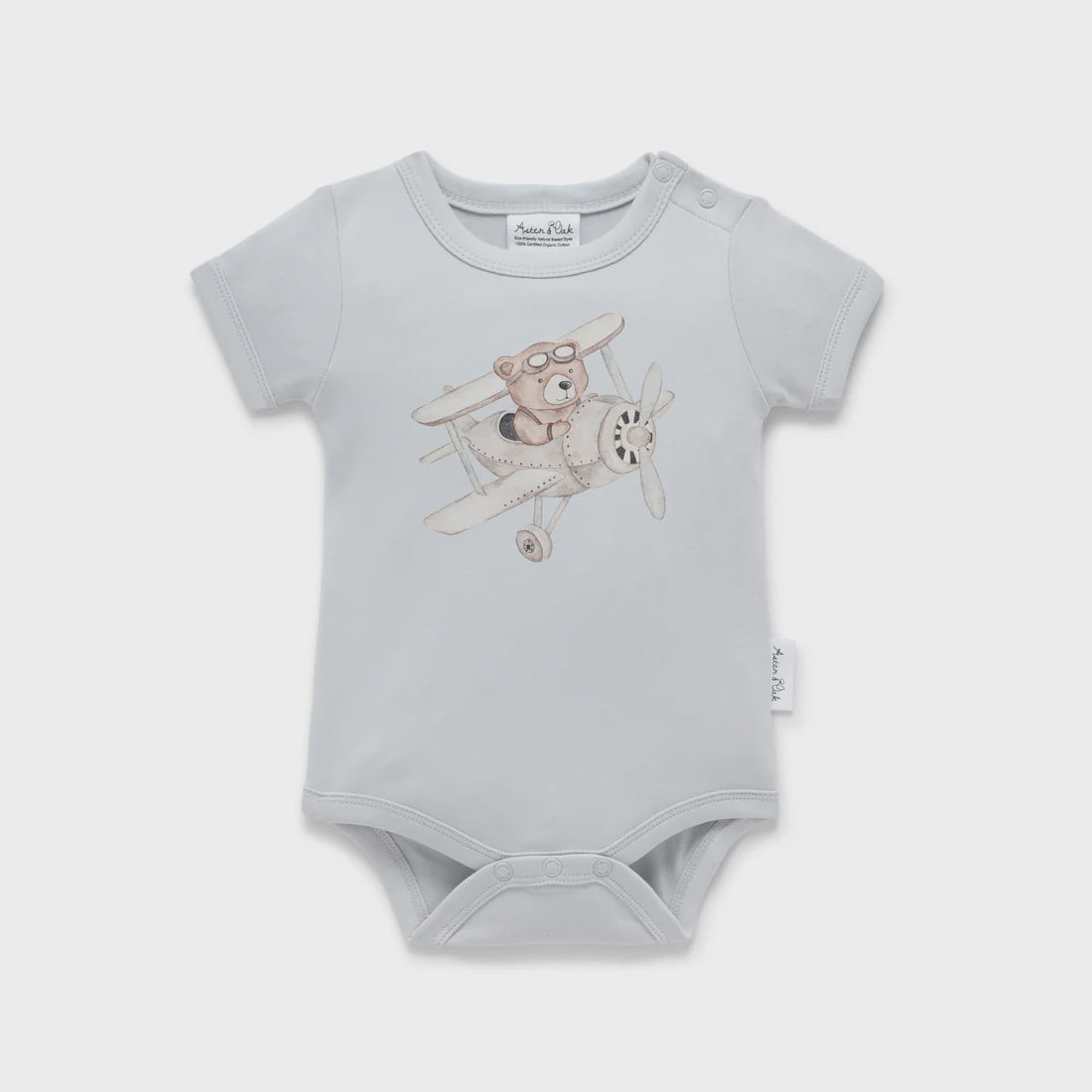 A gorgeous laying piece for the little aviator our Flying Oli Bear Onesie is a super cute staple.