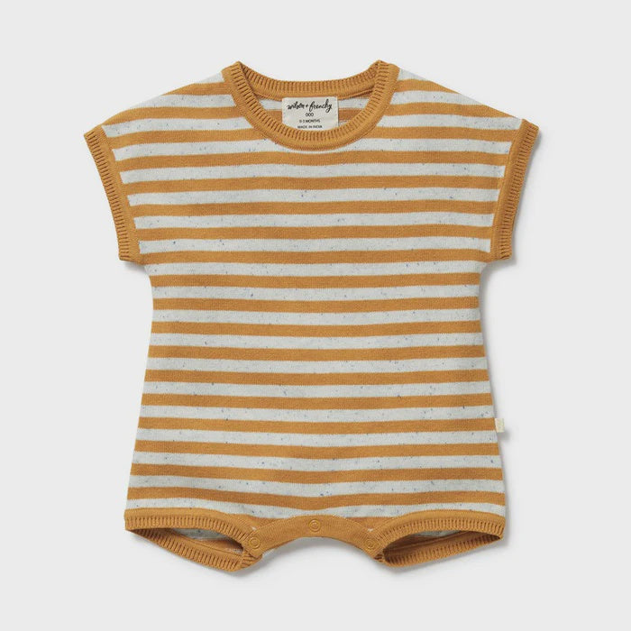 Made for comfort and cuteness, our golden wave stripe organic knitted growsuit is a must-have for your baby’s everyday wardrobe. Crafted from soft, breathable organic cotton knit, this cosy one-piece features an all-over golden stripe design that’s perfect for sunny days and playful moments. Designed with a relaxed fit for easy movement and snaps at the crotch for hassle-free nappy changes, it combines style and practicality in one adorable outfit. Ideal as a summer baby outfit or thoughtful newborn gift, this knitted baby growsuit is gentle on delicate skin and kind to the planet. Key Features: Snaps at crotch for quick and easy nappy changes. Made from organic cotton. Wrapped in a bio-degradable bag. Details: 100% GOTS-certified organic cotton. Certified by: Intertek - 1089164. Machine washable. Made in India.