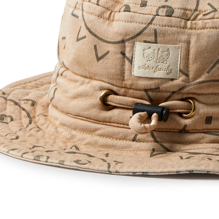 Made from GOTS-certified organic cotton French terry, this fun sun hat is soft, breathable, and perfect for sunny day adventures. Overdyed for a rich colour and extra softness, it features our playful Happy Days print for a cheerful summer look. The wide brim provides sun protection, while the adjustable fit around the head and under the chin ensures it stays snug and secure. Gentle on delicate skin and free from harmful chemicals, it’s a feel-good favourite for outdoor play. Key Features: Adjustable chin strap with breakaway clasp. Adjustable brim for a snug fit. Packaged in a bio-degradable bag. Details: 100% GOTS-certified organic cotton. Certified by: Ecocert, EGL 212333. Machine washable. Made in India.