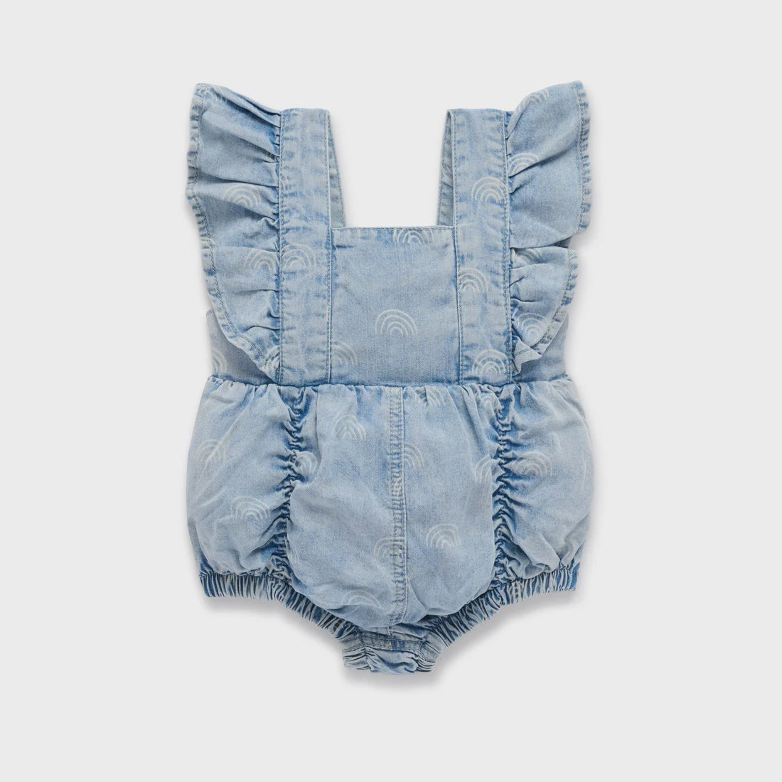 Soft and lightweight, this beautiful playsuit is made from 100% TENCEL™ for a naturally breathable and silky feel against your little one’s skin. Dreamy pale blue base and subtle all-over rainbow design in white, it's perfect for wandering in the sun and playful occasions. The relaxed shape allows for ease of movement, while elastic to the waist and leg openings keep the fit gentle and secure.