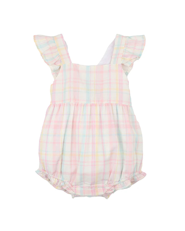 A sweet and breezy essential for sunny days, this pastel check romper brings vintage charm with a modern twist. Crafted in a soft and lightweight Organic Cotton, it features a pretty all-over check in sorbet tones and dainty frill straps that cross over at the back. With a gently elasticated waist and leg openings with frills, and a concealed press stud crotch opening for easy changes, it's designed for comfort, movement and all-day play. Complete the look with the Madelyn check headband for an adorable outfit from head to toe.