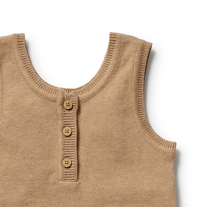 Soft, stylish and oh-so-cute – our oat organic knitted set is the perfect outfit for warm days and sweet moments. Featuring a cropped tank top with a scalloped hem and mock wooden henley placket, this top is all about those delicate Details: . Paired with flared pointelle knit pants, this adorable two-piece offers a relaxed fit that's as comfy as it is charming. Made from breathable organic cotton knit in a neutral oat hue, it’s the ultimate everyday set for little ones who love to move, play and twirl. Key Features: Mock wood buttons and henley front opening. Soft elasticated waist on pants. Made from organic cotton. Wrapped in a bio-degradable bag. Details: 100% GOTS-certified organic cotton. Certified by: Intertek - 1089164. Machine washable. Made in India.