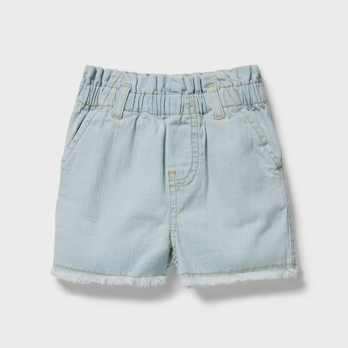 Look no further for Summer-ready denim short. The lightweight, organic cotton short come in mid-length, with an adjustable waistband and functional front and back pockets. Perfect for kids, they'll keep up with all of their fun-filled adventures. Key Features: Soft elastic waistband. Adjustable waist. Soft washed. Functional front and back pockets. Made with organic cotton. Australian owned and designed. Packaged in a bio-degradable bag. Details: 98% organic cotton, 2% elastane. Machine washable. Made in India.