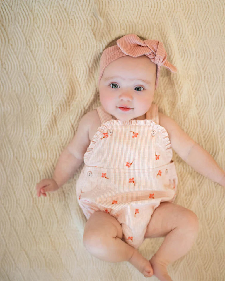 A sweet twist on a classic overall, this embroidered romper is made for sunny days and playful adventures. With dainty floral motifs and frill-trimmed front , it's a pretty yet practical piece that's just right for your little one's everyday wardrobe. Pair it back with the Songbird embroidered bodysuit Perfect for pairing with the Songbird embroidered bodysuit or worn as a standalone outfit on warmer days.