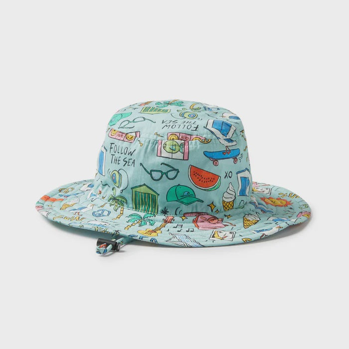 Protect your little one from the sun with our printed sunhat! Made from 100% cotton and rated UPF 50+ for maximum protection. it features a wide brim to keep your child shaded all day. Key Features: Adjustable chin strap with breakaway clasp. Adjustable brim for a snug fit. Packaged in a bio-degradable bag. Details: Outer and Lining: 100% cotton. Machine washable. Made in India.