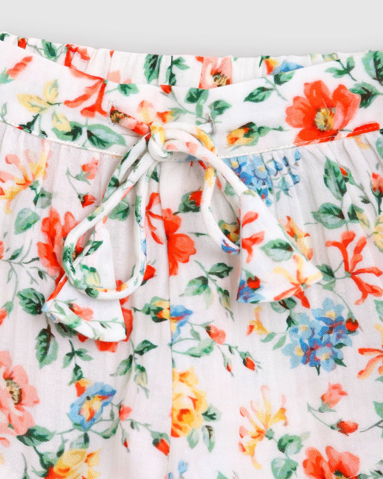 The Tessa Shorts in Pretty Floral are a playful and stylish addition to your little one’s wardrobe. Featuring a vibrant floral print and delicate ruffle detailing along the edges, these shorts bring a cheerful and feminine touch to any outfit. The elasticated waistband with a drawstring tie ensures a comfortable and adjustable fit.