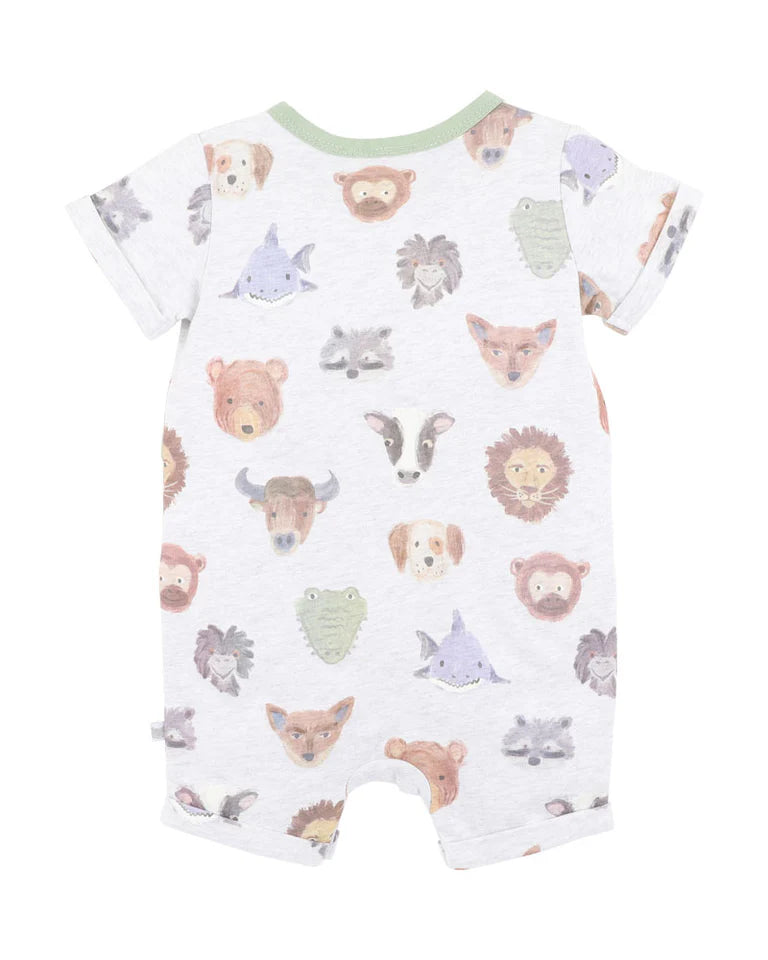 Bring a touch of the wild to everyday wear with this playful Henley romper, featuring our charming Wildlings print. From the soft green trims to the sweet little animal faces, it's made for adventure, discovery, and cuddles. Whether they're rolling, crawling, or snoozing, this all-in-one is designed to keep them comfy all day long.