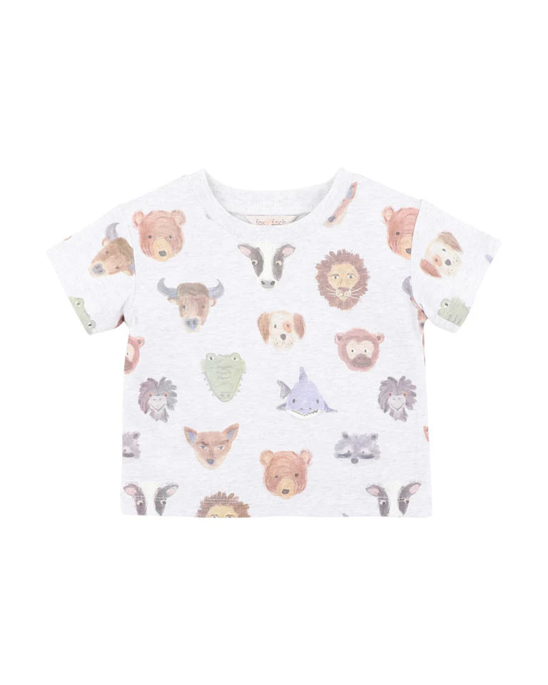 Get ready for a wild adventure! This playful tee is covered in a cheeky crew of Wildlings, from lions to badgers, bears and buffalo, making it perfect for little explorers with big imaginations. Made from soft, breathable cotton and easy to mix and match, it's a must-have for everyday fun. Wear it back with the acid wash shorts or tan shorts for an easy summer look.